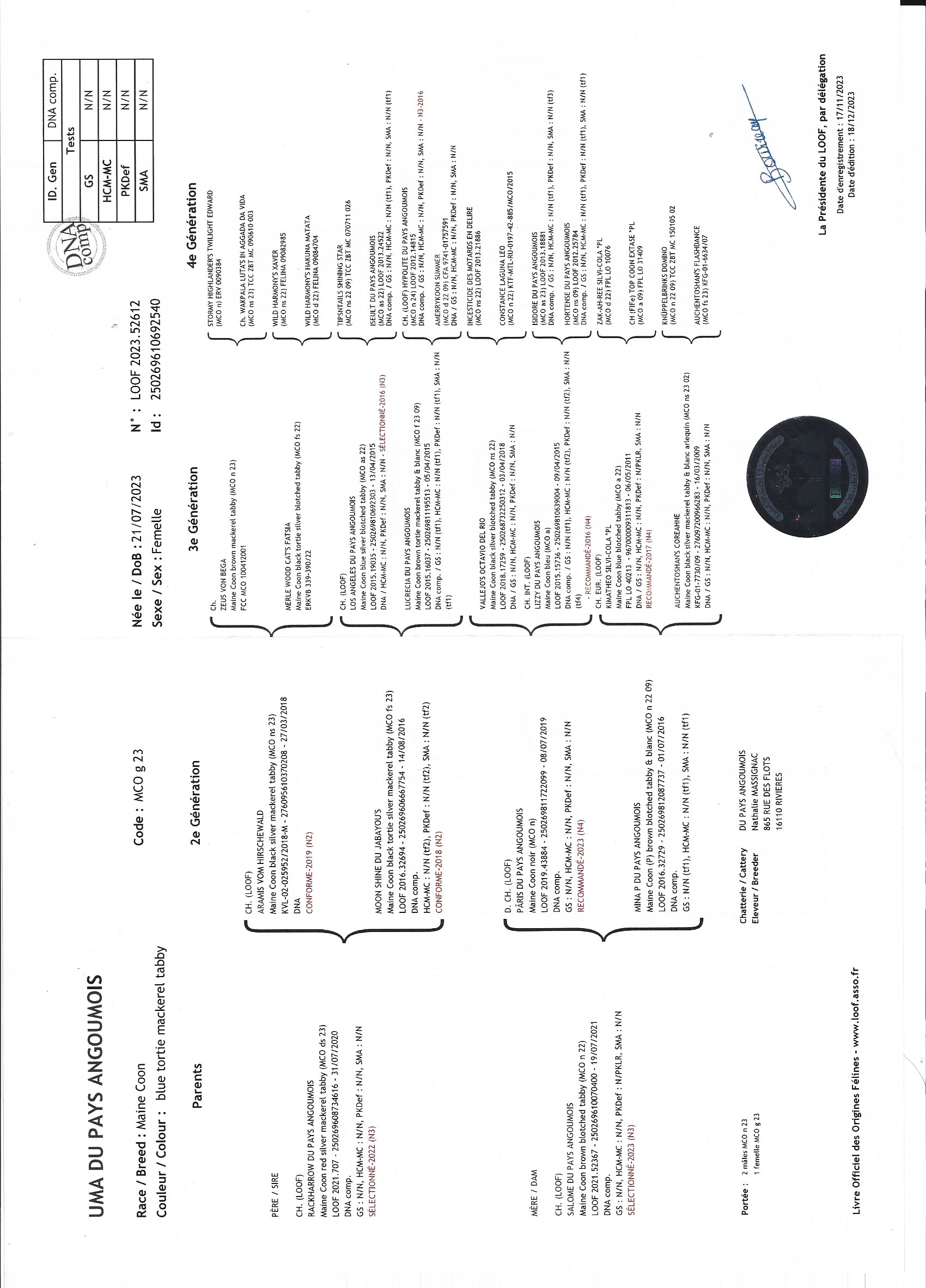 Née le 06 Novembre 2022 (Born on Novembre 06th, 2022)